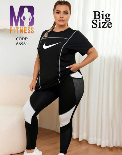 ست تیشرت و لگ کمر پهن ورزشی زنانه سایز بزرگ کد 66961
