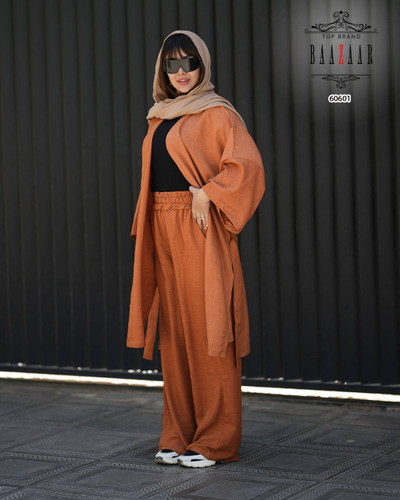 سه تیکه مانتو شلوار کمر گنی کمربند 60601