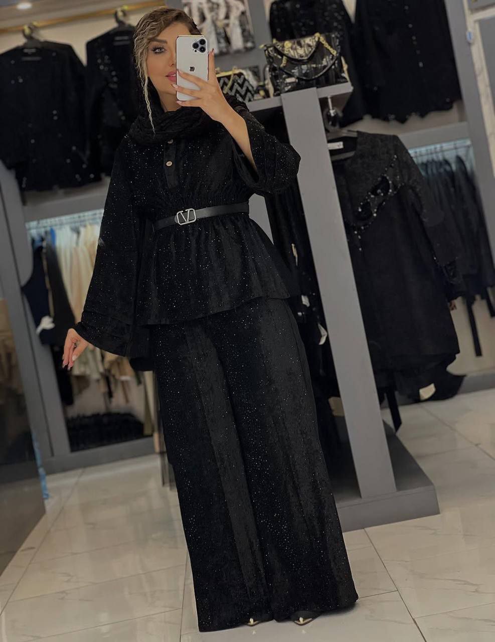 ست بلوز شلوار مخمل نگین کاری مجلسی کد021110