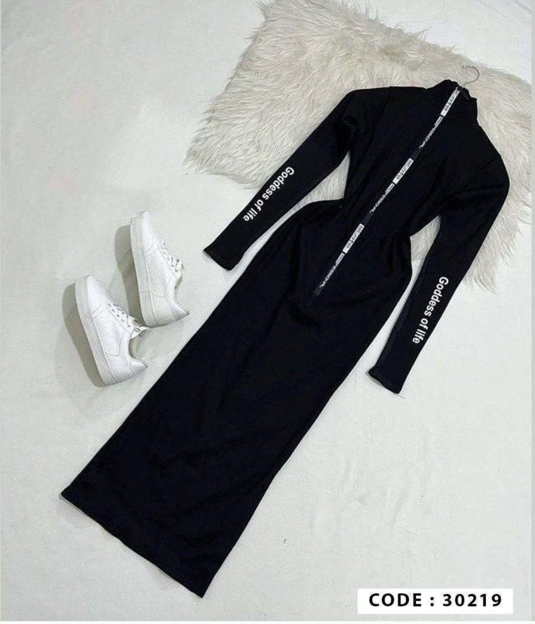 پیراهن بلند زیپ چاپی آستین فینگر دار کد 30219