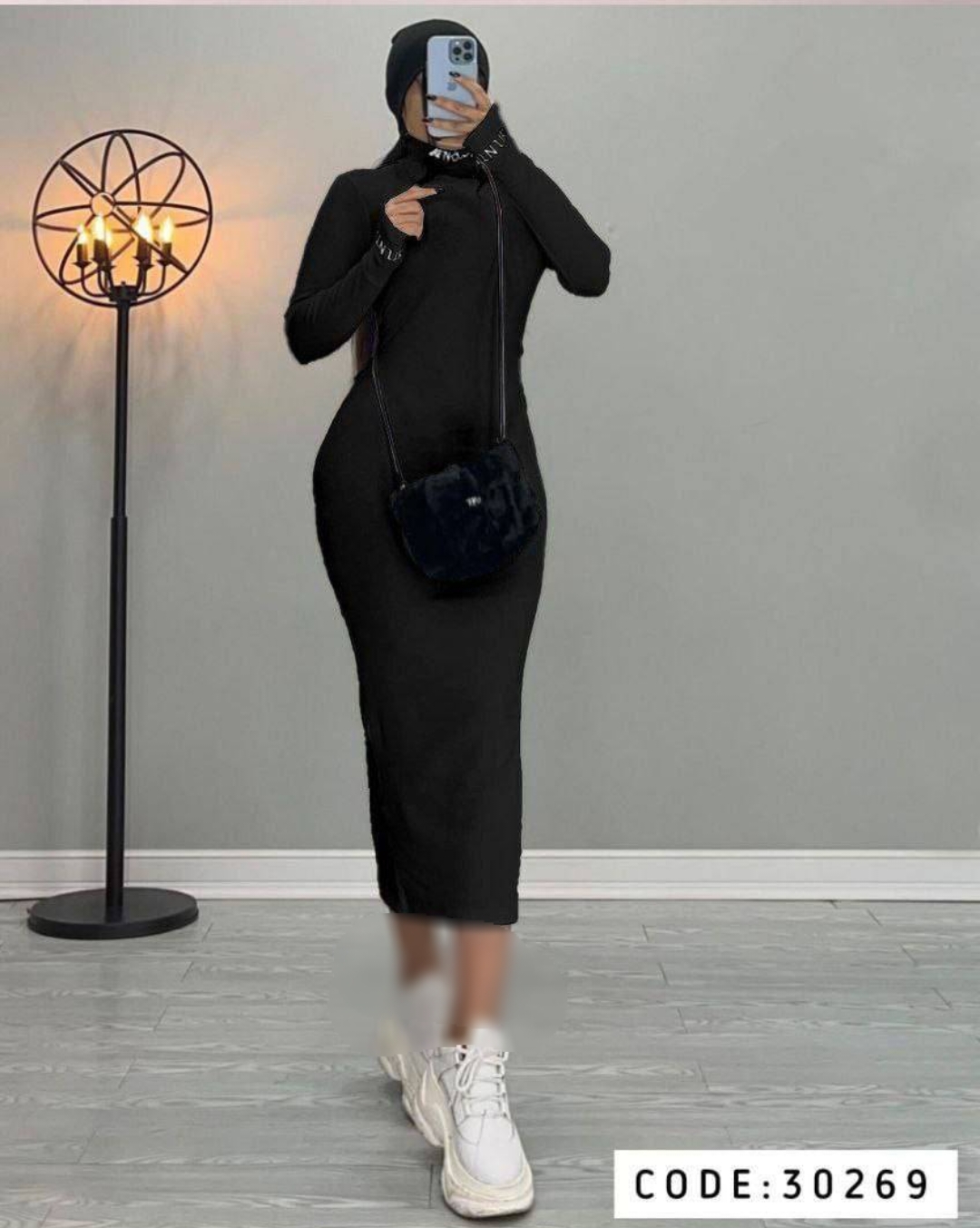 پیراهن بلند یقه اسکی دوبل زنانه کد 1504