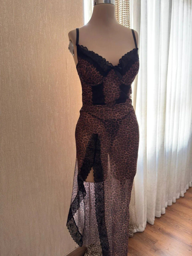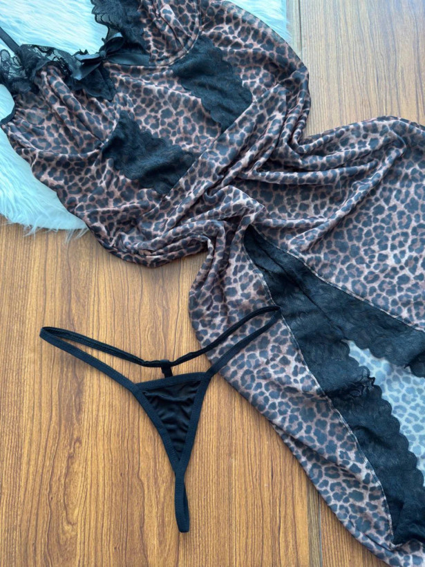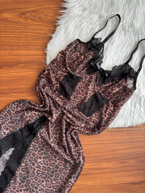 لباس خواب پیراهن پلنگی فنردار سایز L,XL کد 6914