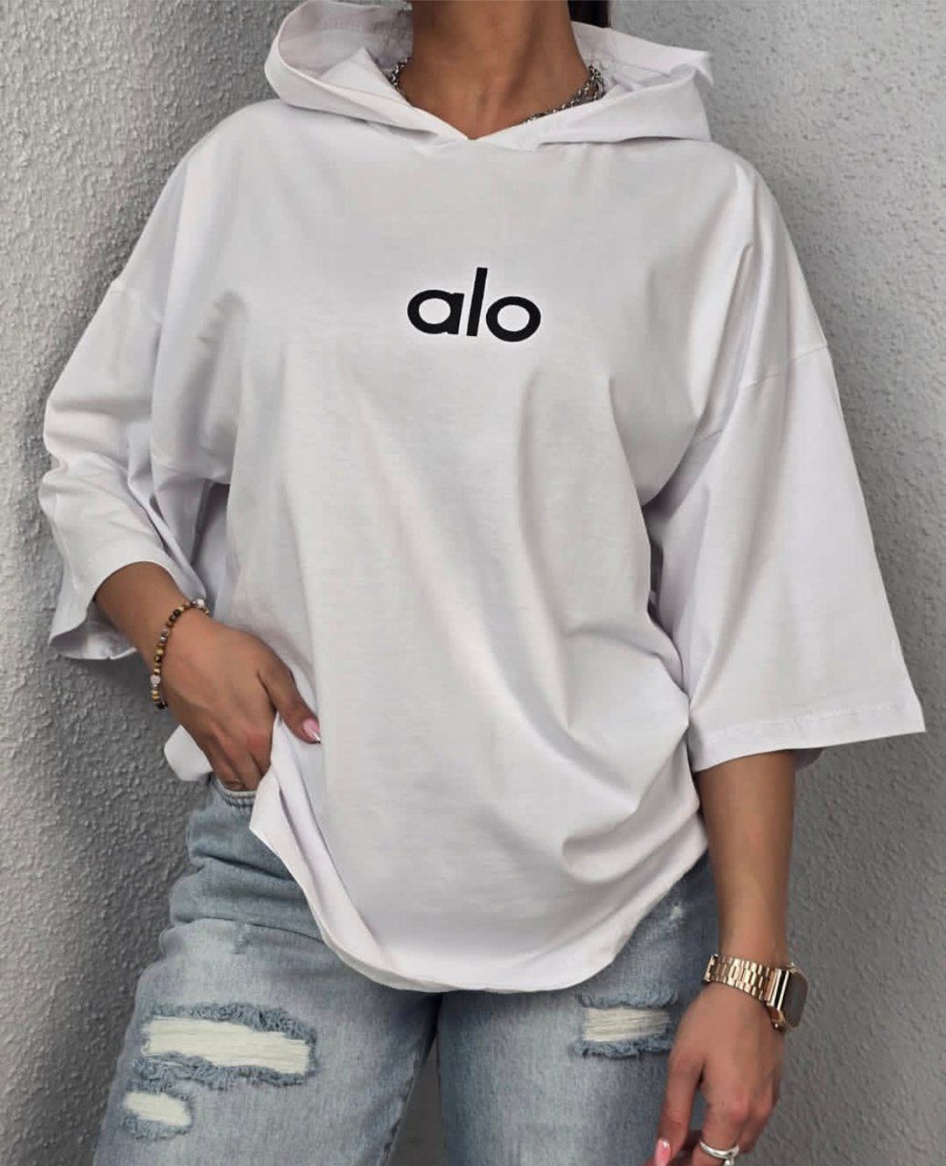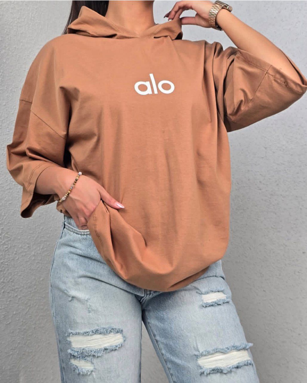 تیشرت باکسی کلاهدار alo😍