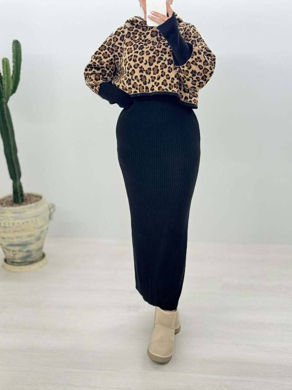 ⚜️ست سارافون و رویه پلنگی کلاهدار برند AX