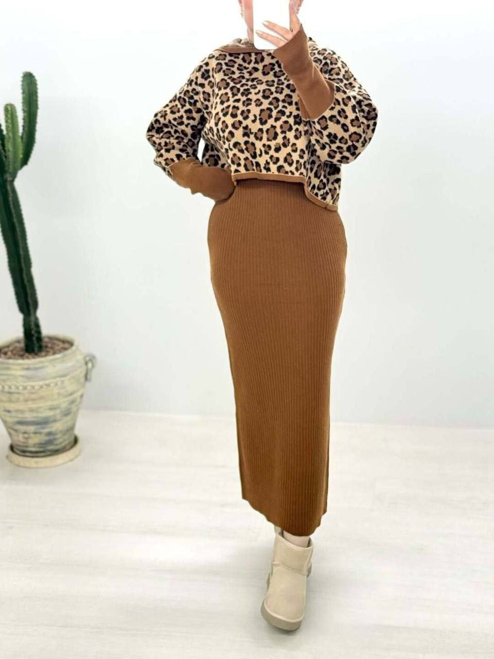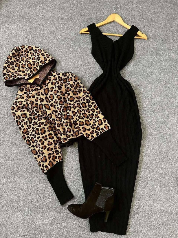 ست سارافون و رویه پلنگی کلاه دار