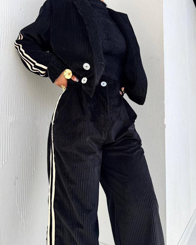 ست دو تیکه بامبر و شلوار بگ مخمل زنانه
