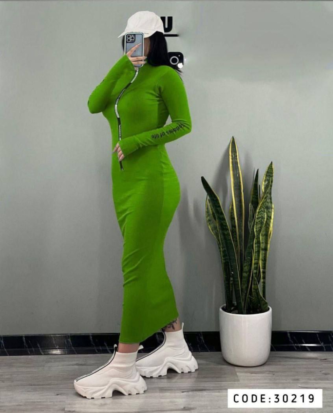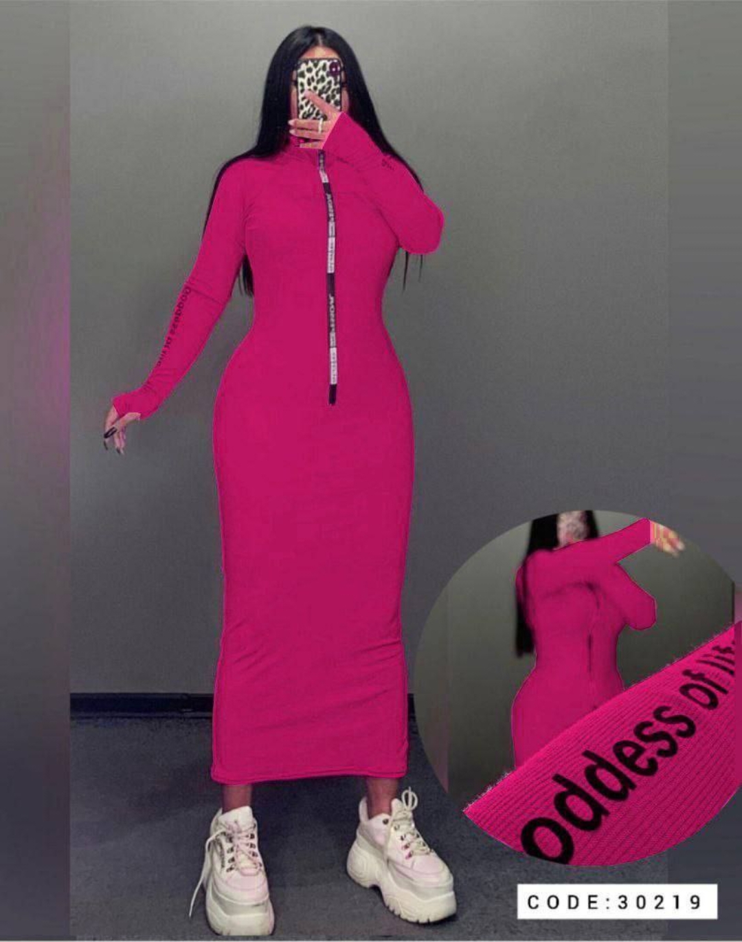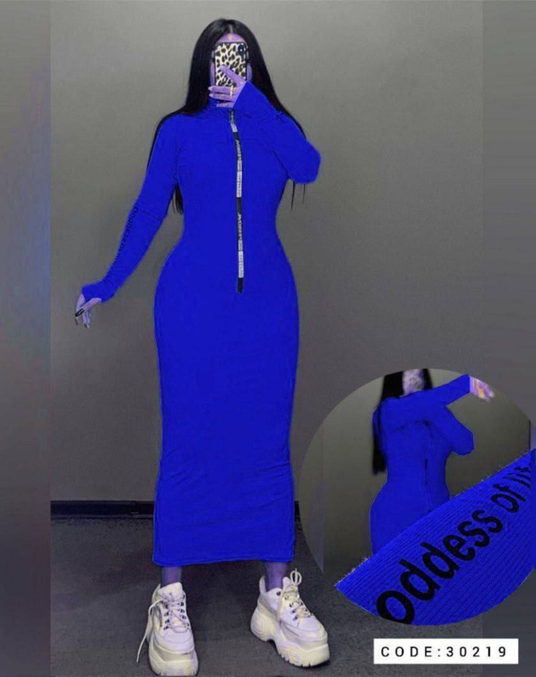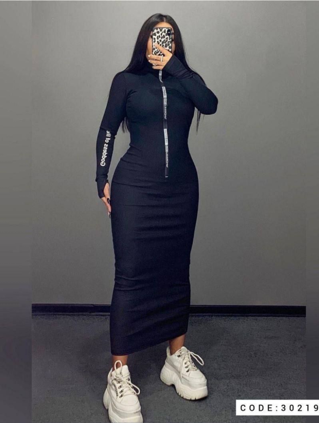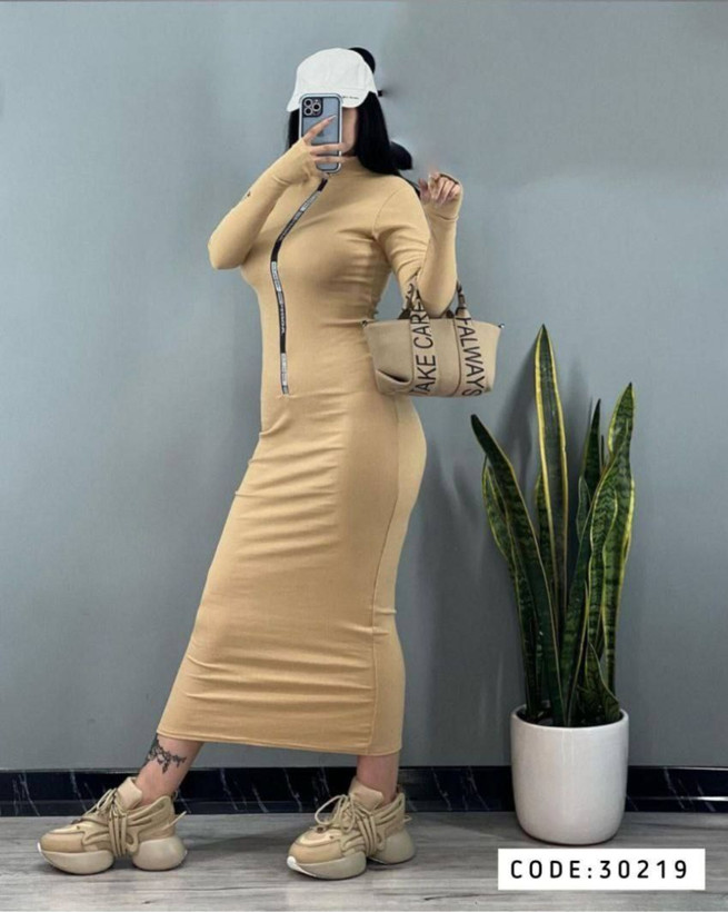 پیراهن بلند زیپ چاپی آستین فینگر دار کد 30219