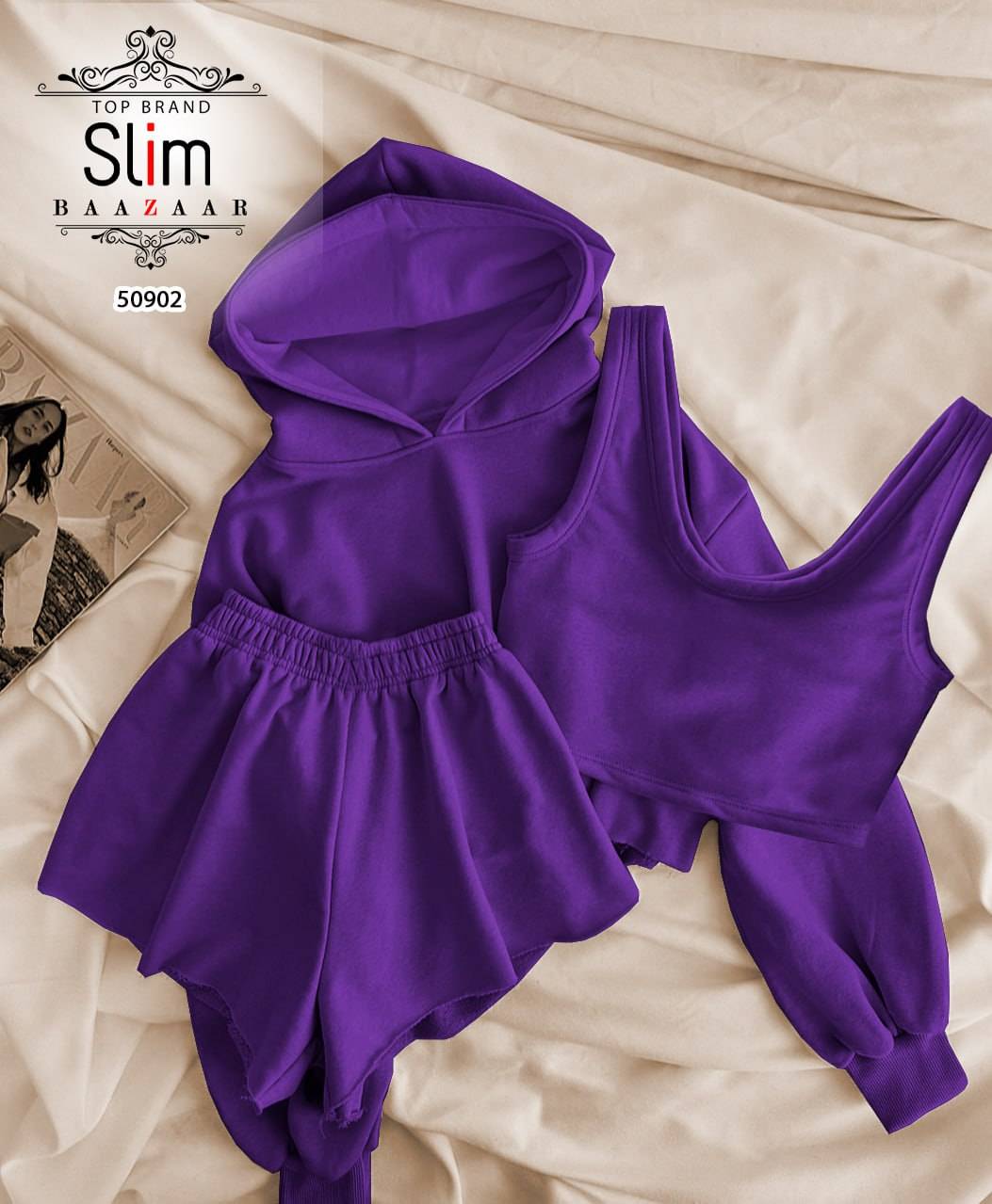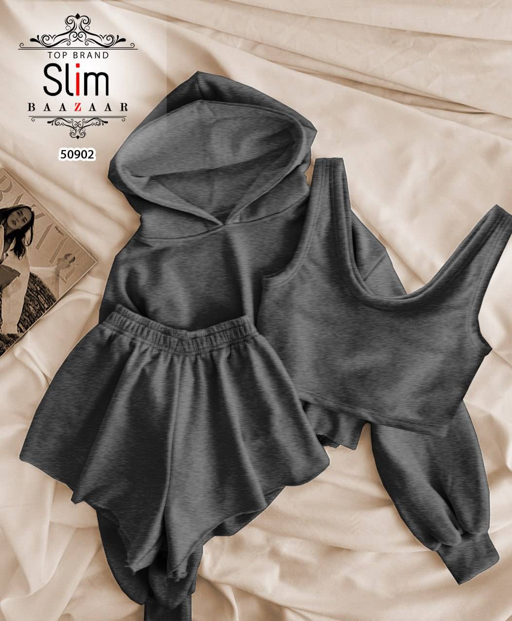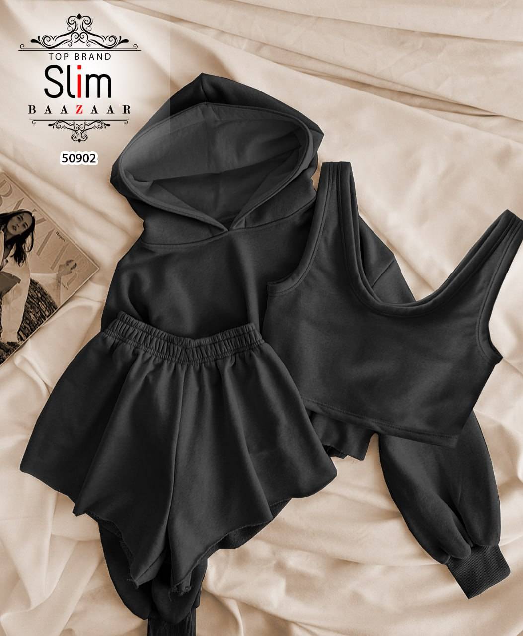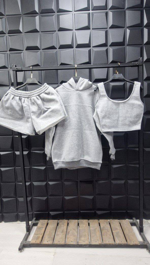 سه تیکه کراپ شورتک هودی کد 50902