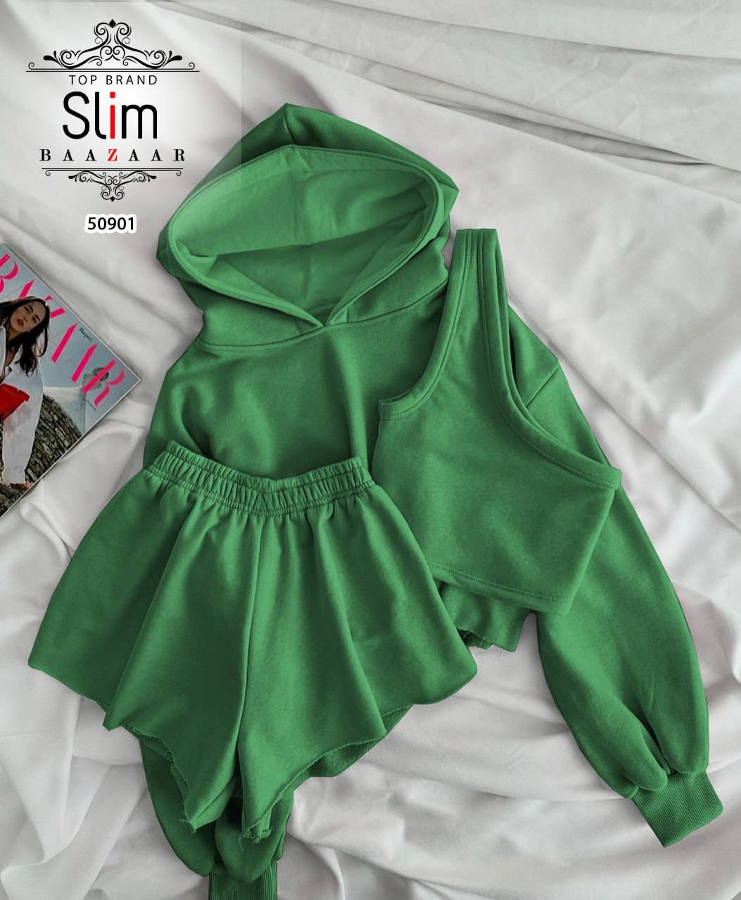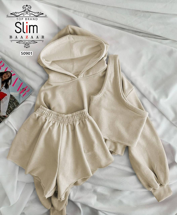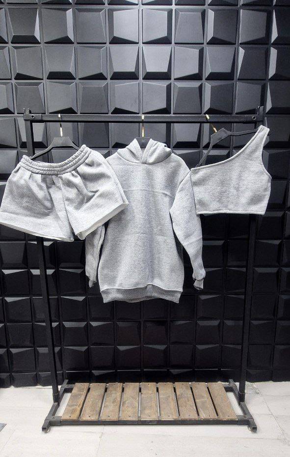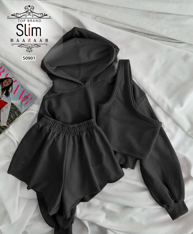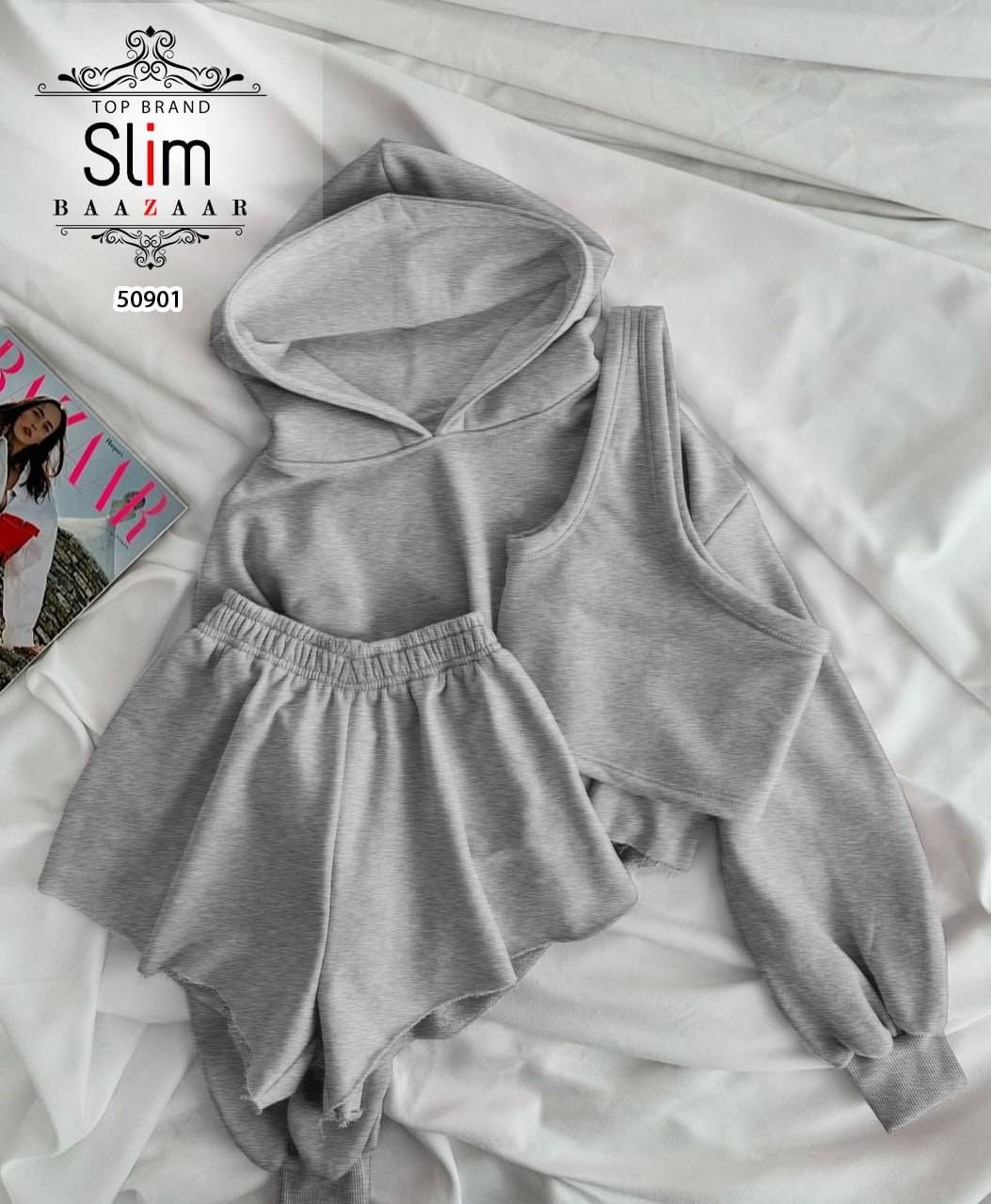 سه تیکه کراپ شورتک دامنی هودی کد 50901