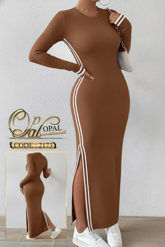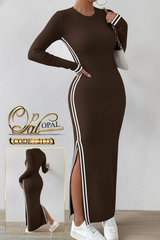 پیراهن بلند چاک دار نوار دوزی کد 2173